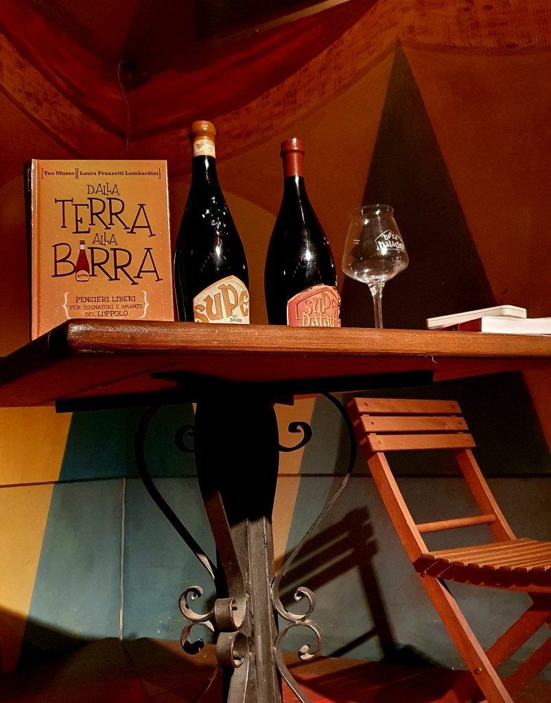 Teo Musso è nato a Carrù e vive a Piozzo (CN). Inizia il suo racconto regalandoci una risata con una sua esclamazione, aveva la luce puntata negli occhi. Prima di iniziare il racconto di Teo vorrei precisare che si scrive Baladin ma si legge con la “e”, ovvero Baladen e no, il suo cognome è Musso anche se tutti lo conoscono con il nome del birrificio. Baladin tradotto dal francese all’italiano significa “racconta storie”.